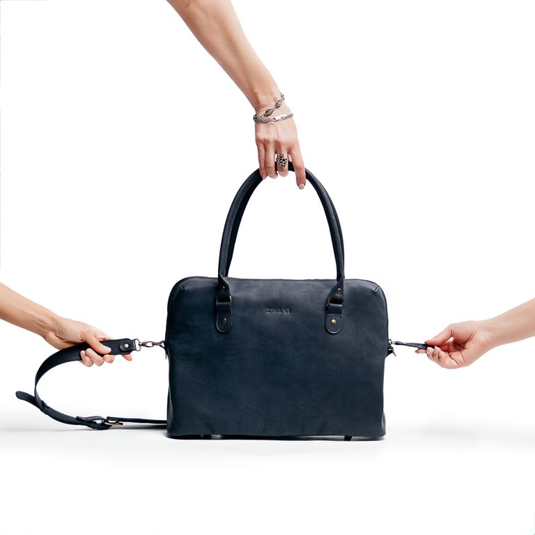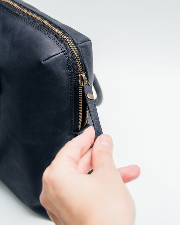 Сумка из натуральной кожи застегивается на металлическую молнию.