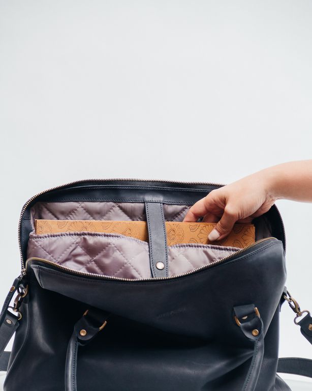 Внутри 1 отделение под ноутбук и 1 отделение для документов формата А4.